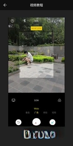 首先在应用底部找到并选择【广角模式】开始拍摄,完成第一张照片的捕捉。