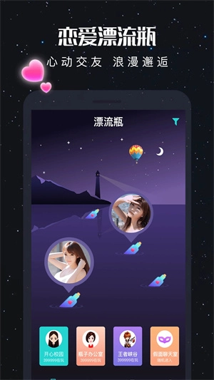 新漂流瓶是一款备受欢迎的社交软件,主打年轻群体社交风格。用户在这里可以结识不同类型的好友,通过与好友互动发现更多有趣玩法,操作简单便捷,让交友过程轻松愉悦,还能体验温馨的恋爱氛围。