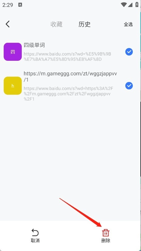 选择要删除的历史记录即可。