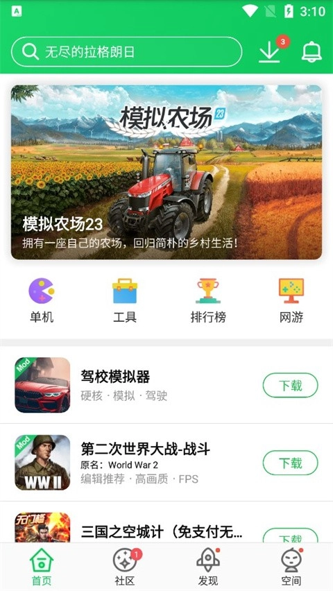 安装并打开葫芦侠3楼,进入软件后就能看到,里面不仅有不少游戏推荐,还有排行榜。
