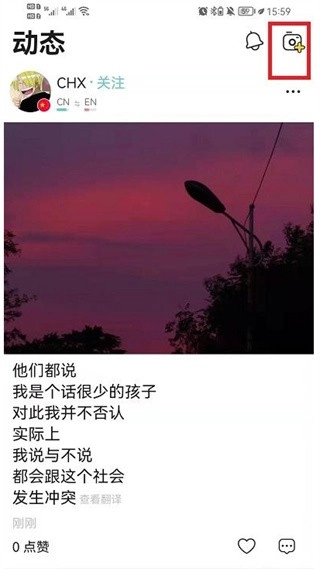 打开软件,点击页面下方的动态符号,见下图;