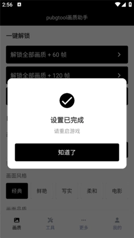 打开pubgtool,在一键解锁栏中,可解锁60帧、120帧的画质,同时还能解锁超高音质。