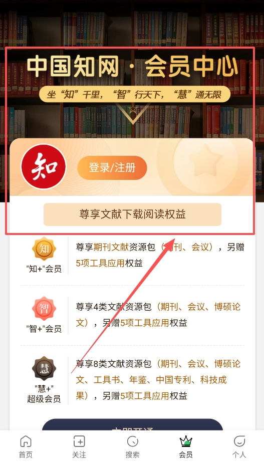 首先,如果需要查找文献,可以前往会员中心。那里提供知加、智加和慧加三种会员类型,您可以根据自身需求选择登录或注册相应账号。