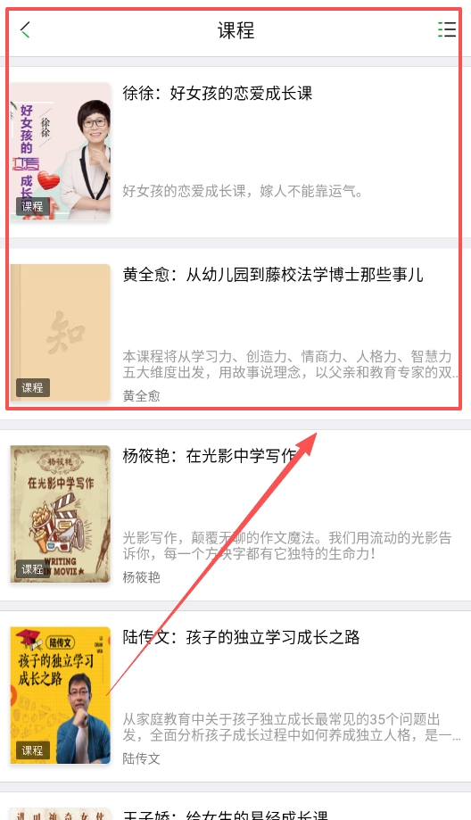 课程学习也很简单,在课程板块里浏览各类主题,像恋爱课或者写作课,挑选一个感兴趣的点击进入,内容分类明确查找起来很轻松。