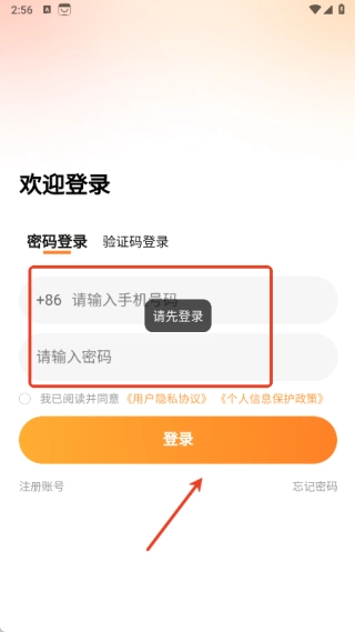 进入登录页面后,依次输入手机号和密码,勾选同意相关协议,完成登录操作,之后就可以进行预订了。