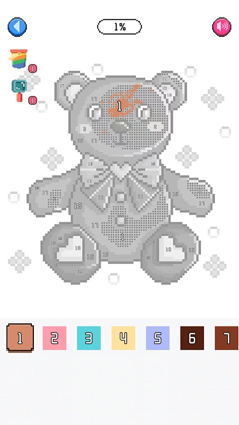 这里拿小熊来举例,下面有不一样的颜色块,不同的数字对应着相应的色块。