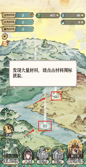 进入后会有新手引导,点击下方的探索世界,就能获取模拟过程中需要的各类材料。