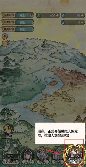 当材料储备充足时,点击“命运推演”按钮,就能启动对人类发展命运的模拟进程。