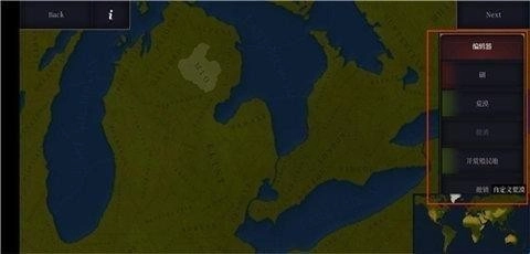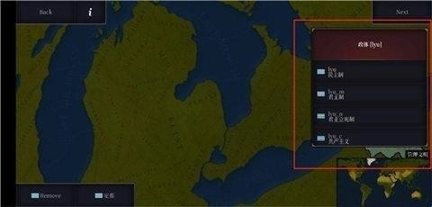 进入创建页面后,在右侧选定洲,接着点击地图来选择势力范围。