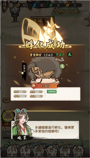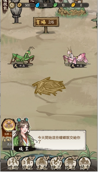 每天上线开始来培育你的螳螂,让其能够成长。