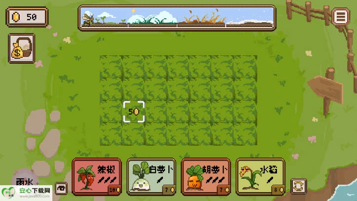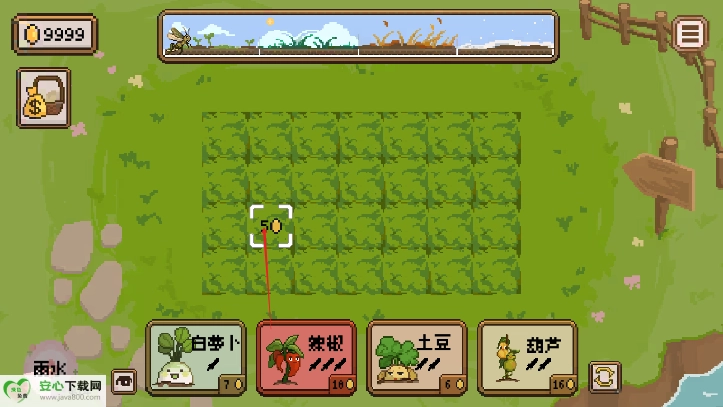 放入方格的蔬菜得等一阵子才能长大,先是进入升级阶段,就像种子发芽那样,之后会出现水滴标识,这时候得按住来浇水,能让它长得更快些。就算不浇水也没关系,碰到雨季的话它也会很快长成成品,只有变成成品了才能扛住昆虫的侵害。最后的BOSS是年兽,也就是过“年关”,得成功把年兽打败才算走完一个轮回。