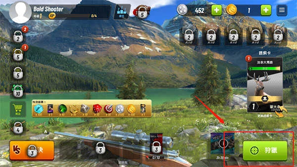 安装游戏后,可直接进入游戏主界面,点击“狩猎”即可开始游戏。