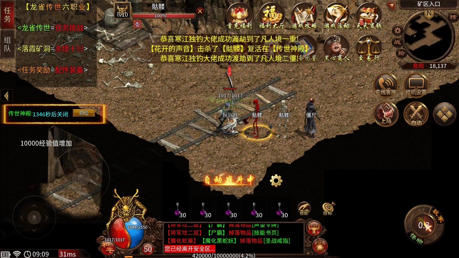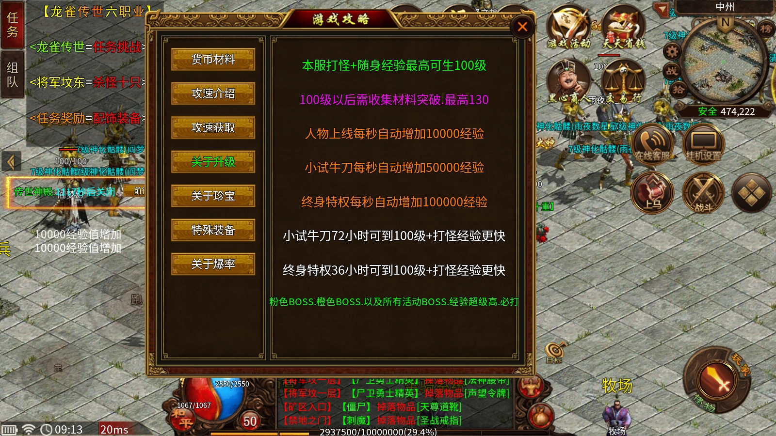 本服通过打怪和随身经验的双重助力,能让玩家轻松升级,等级上限可达100级。