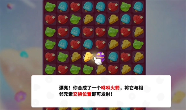 当消除方块时,若一次性消除4个,便能获得一个道具,像火箭这类,只需和相邻方块互换位置就能发射,能直接清除一整排。