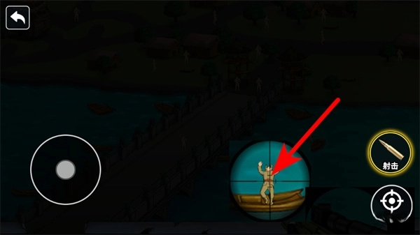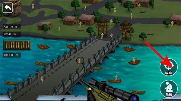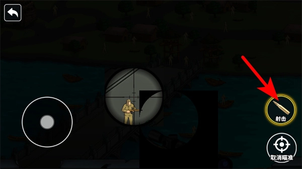 完成瞄准后,点击右侧箭头所指的射击按钮,即可对已瞄准的敌人执行射击动作。