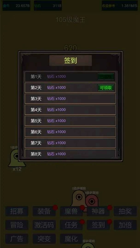 小小史莱姆推翻大魔王钻石是一款以史莱姆为主角的放置类冒险游戏。玩家将化身史莱姆指挥官,率领一群萌趣的史莱姆朝着魔王城前进,借助升级、进化史莱姆,合成传说装备等途径,最终战胜大魔王!