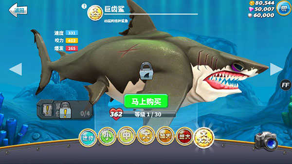 你是海洋的霸主,海中所有生灵都能成为你的猎物,只要你的食量足够惊人。