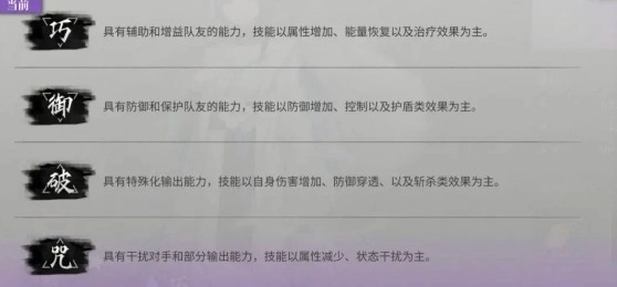 职业玩法:巧、咒为辅助,御为肉盾,破为输出