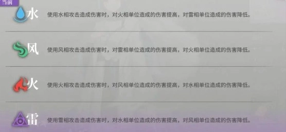 属性玩法:水克火、火克风、风克雷、雷克水