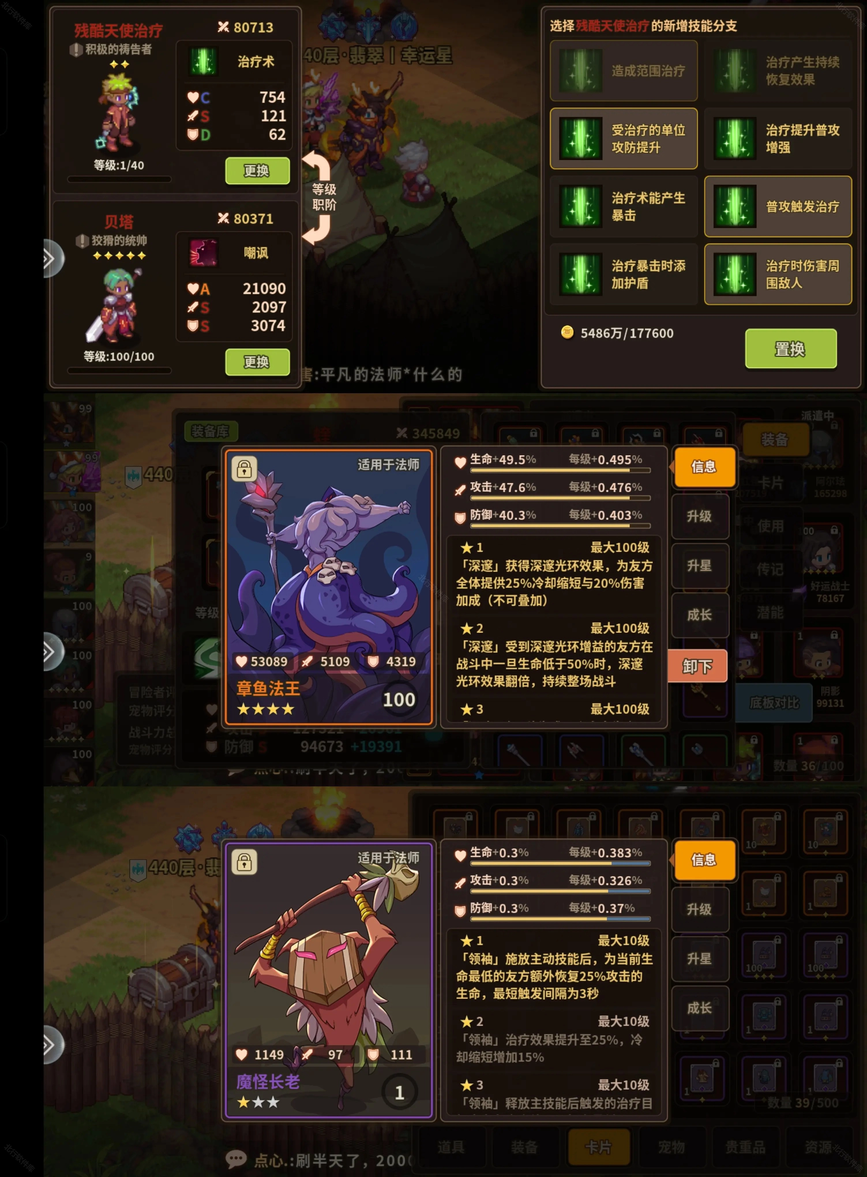 2号位置:选择普通攻击型奶妈,同时搭配橙色品质的章鱼卡牌或者紫色品质的魔怪长老卡牌。