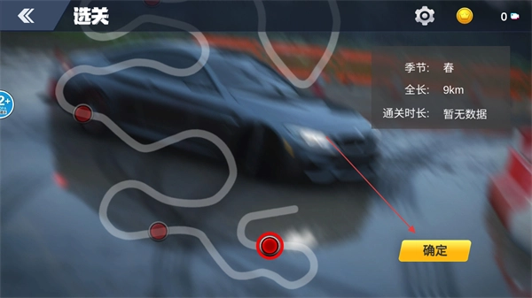 在关卡选择界面,点击红色圆点选定关卡后,即可查看该关卡的季节、全长等相关信息,确认无误后点击确定按钮就能进入游戏。