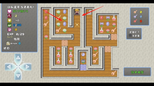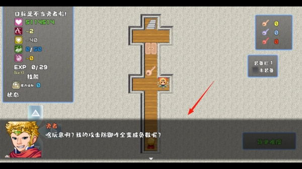 操控角色在十字形地图中移动,留意到攻击与防御属性出现负数的异常状况,在移动过程中触发剧情对话,探寻属性异常对冒险进程的影响,体验打破常规的数值机制。