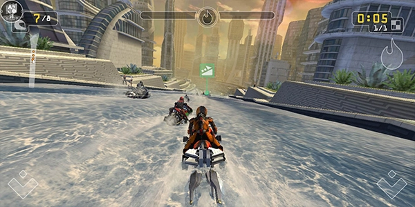 改造车辆:收集并升级你的车库,让里面停满能在骑行时变换形态的高速水射流车辆。通过赢取奖金来升级和定制每一辆车。