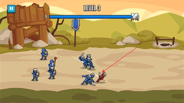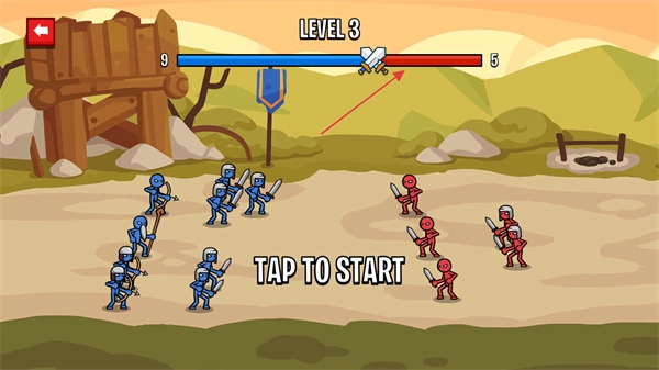 点击屏幕即可开启战斗,士兵会优先对前排敌人发起攻击,从而实现逐一击破的效果。